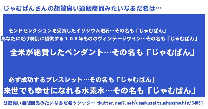 | 意味不明あだ名 | 『とにかく怪しいじゃむぱん』 |