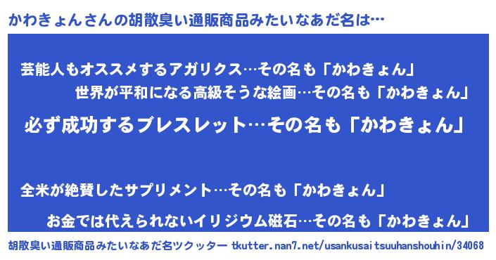 | 欧米人風あだ名 | 『マイケルかわきょん』 |