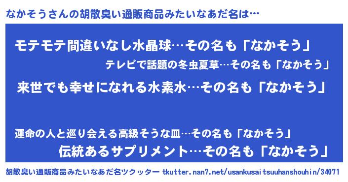 | 意味不明あだ名 | 『永久保存なかそう』『ペロリンなかそう』 |