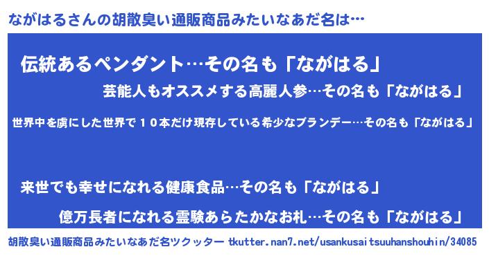 | 男性向けラノベタイトル風あだ名 | 『魔弾の王とながはる』『ながはるの憂鬱』 |