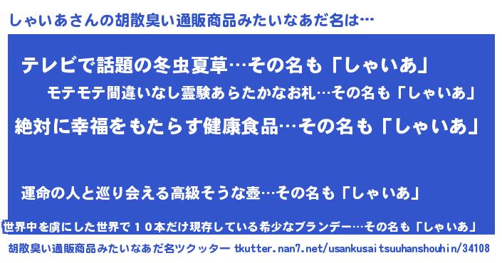 | ヘコむあだ名 | 『しゃいあ(苦笑)』『しゃっふぃ~』 |
