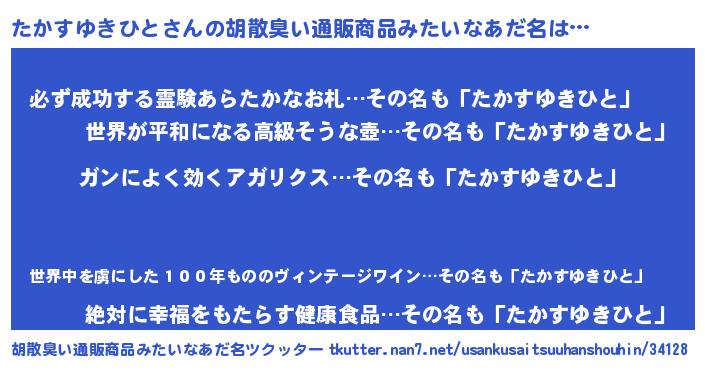 | ヘコむあだ名 | 『たかにゅー』『たかすゆきひと(震え声)』 |