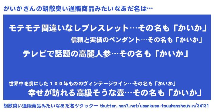 かいかさんの胡散臭い通販商品みたいなあだ名をツクッター!