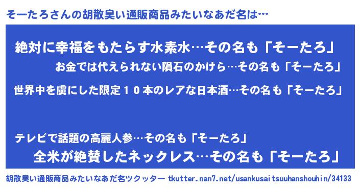 | ヘコむあだ名 | 『そーたろ(笑)』『そーを』 |