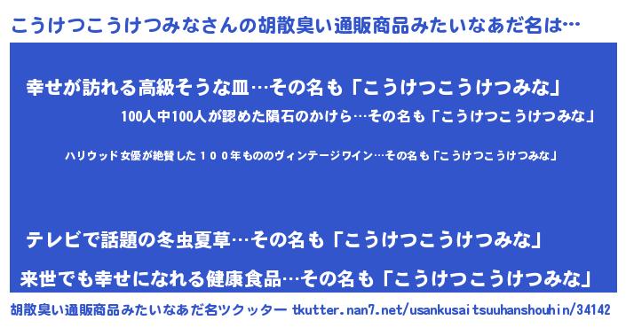 | 料理風あだ名 | 『こうけつこうけつみなのカルパッチョ風』 |