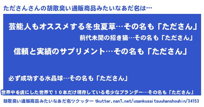 | 意味不明あだ名 | 『めかぶ科たださん属』『自称たださん』 |