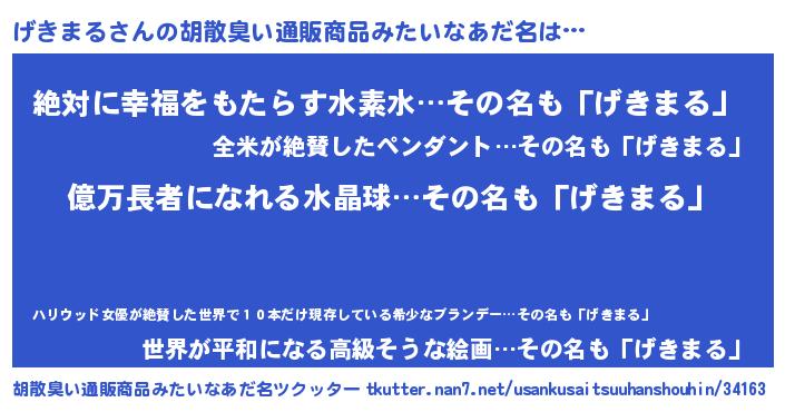 | ヘコむあだ名 | 『げきふぇ~』『げきまる(遠い目)』 |