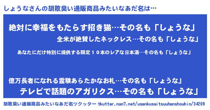 | 男性向けラノベタイトル風あだ名 | 『しょうなに滅ぼされるだけの簡単なお仕事です』 |