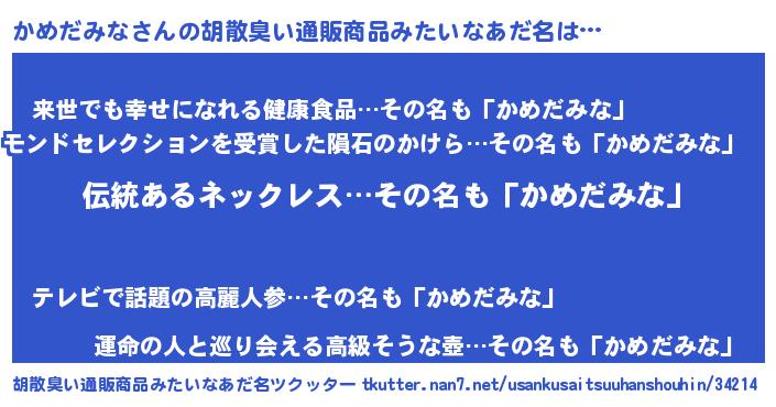 | 意味不明あだ名 | 『とにかく怪しいかめだみな』 |