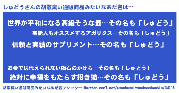 | ヘコむあだ名 | 『しゅお』『レバニラ』『しゅにゅー』 |