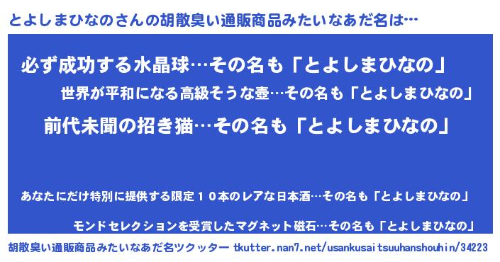 | ヘコむあだ名 | 『とよしまひなの(笑)』『とよにゅー』 |
