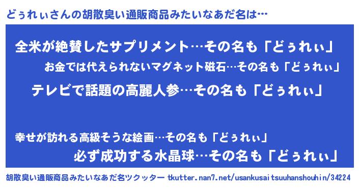 | 男性向けラノベタイトル風あだ名 | 『転生したらどぅれぃだった件』 |