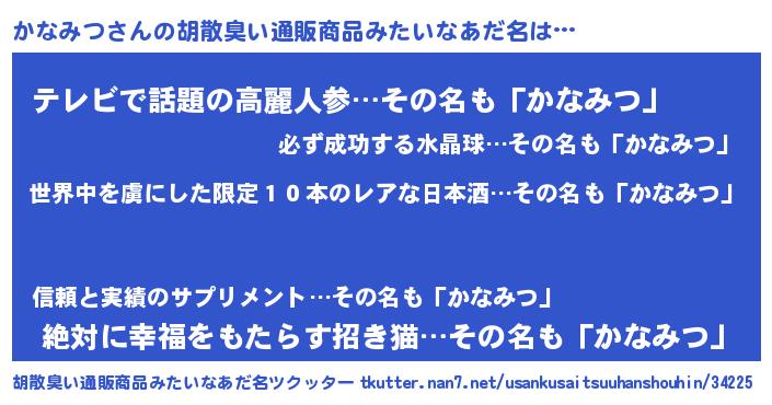 | 意味不明あだ名 | 『住所不定無職かなみつ(50歳)』 |