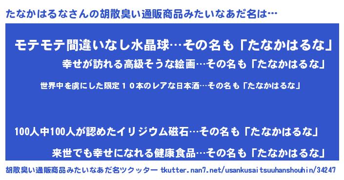 | ヘコむあだ名 | 『たなにゅー』『たなかはるな(笑)』 |