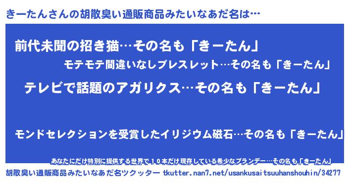 | ヘコむあだ名 | 『きーたん(笑)』『きーもー』 |