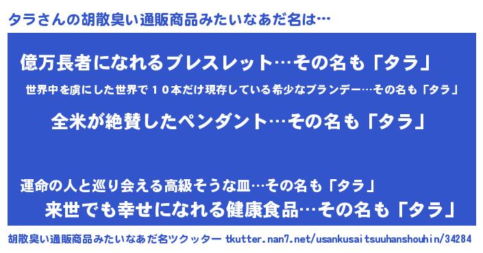 | 意味不明あだ名 | 『とにかく怪しいタラ』『ペロリンタラ』 |