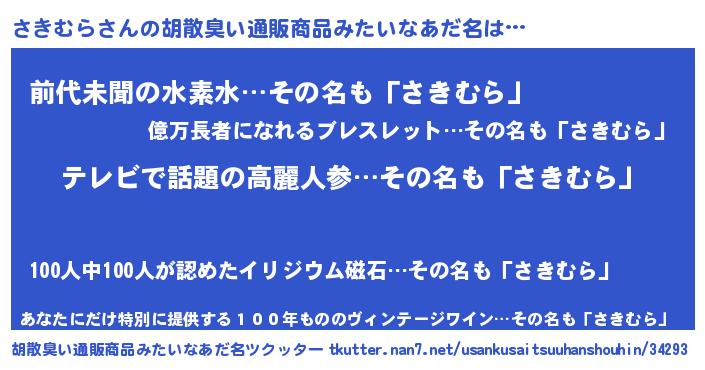 | ヘコむあだ名 | 『さきむら(小並感)』『さきもー』 |