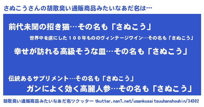 | ヒーロー風カッコイイあだ名 | 『ウルトラさぬこうマン』『ネオサヌコウ』 |