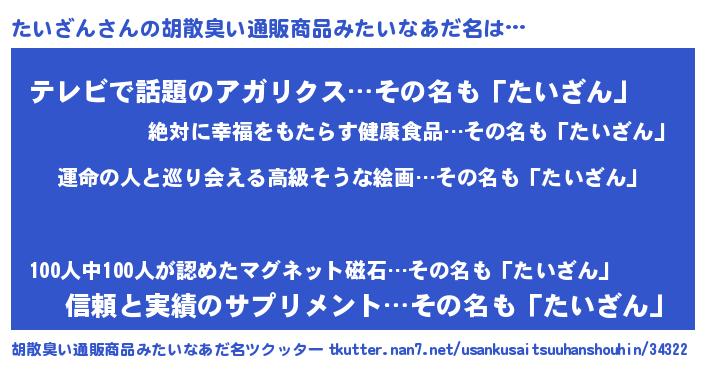 | 意味不明あだ名 | 『たいざんフォーエバー』『自称たいざん』 |