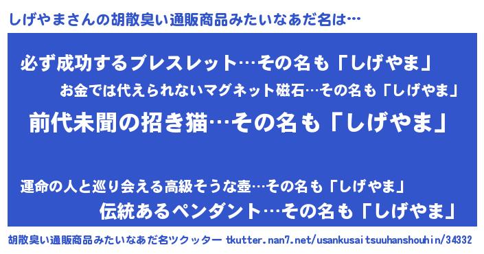 | ヘコむあだ名 | 『しげやま(笑)』『しげにー』 |