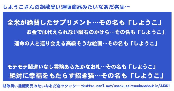 しようこさんの胡散臭い通販商品みたいなあだ名をツクッター!