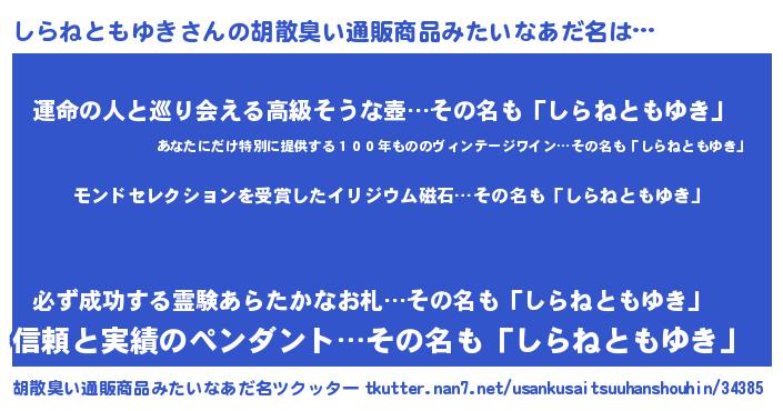 | 男性向けラノベタイトル風あだ名 | 『ノーゲーム・ノーシラネトモユキ』 |