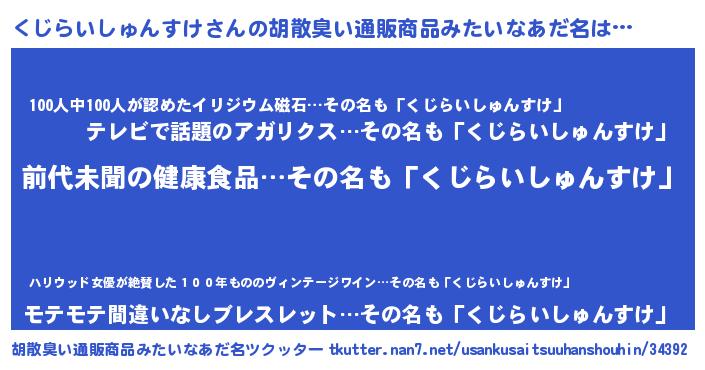 | ヘコむあだ名 | 『くじらいしゅんすけ(笑)』『くじにゅー』 |