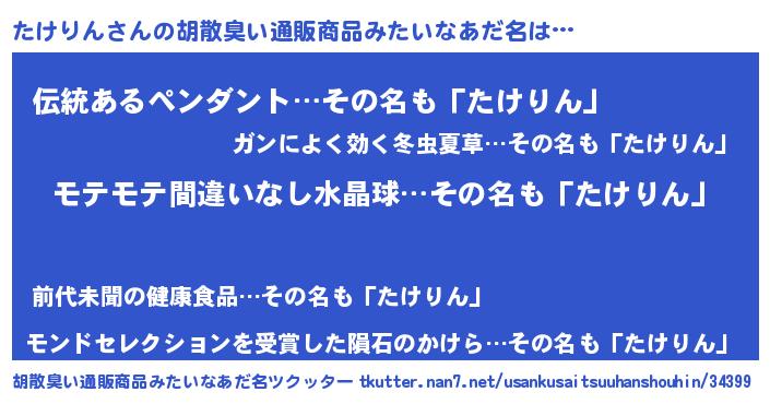 | ヘコむあだ名 | 『たけふぇ~』『たけっちょ』 |
