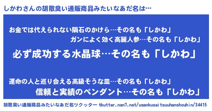 | ヒーロー風カッコイイあだ名 | 『スーパーシカワ』『天空の使者しかわ』 |