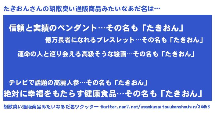 | 肩書あだ名 | 『たきおん中佐』『たきおん総理大臣』 |