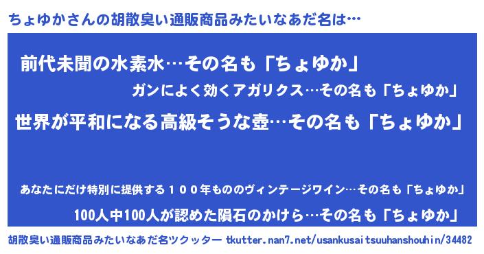 | 意味不明あだ名 | 『もやし科ちょゆか属』『自称ちょゆか』 |