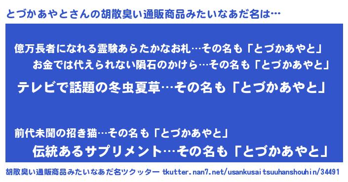 | 意味不明あだ名 | 『自称とづかあやと』 |