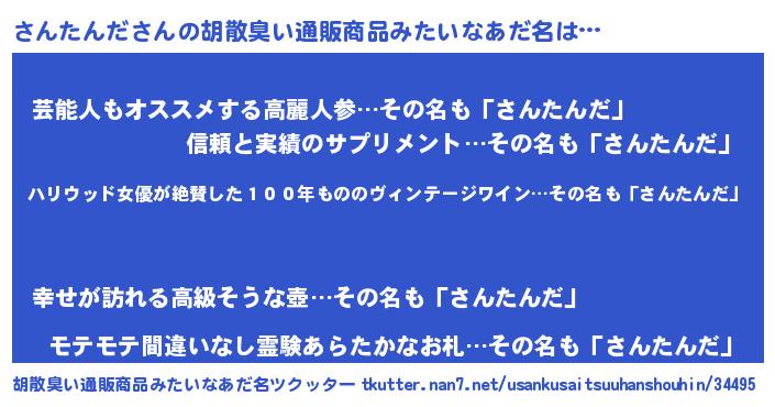 | 意味不明あだ名 | 『住所不定無職さんたんだ(2歳)』 |