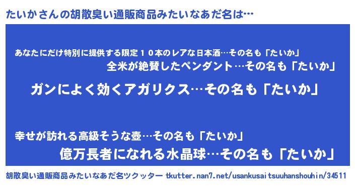 | 意味不明あだ名 | 『自称たいか』『住所不定無職たいか(71歳)』 |