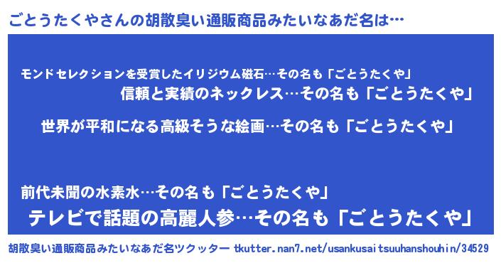 | 肩書あだ名 | 『ごとうたくや総理大臣』 |