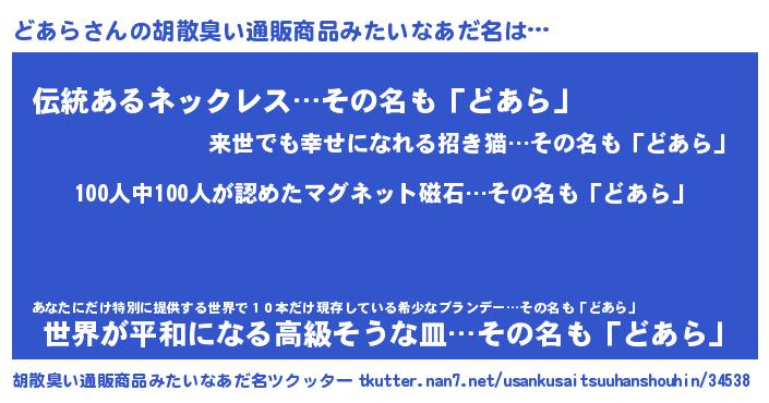 | 欧米人風あだ名 | 『ダニエルどあら』『ウサインどあら』 |