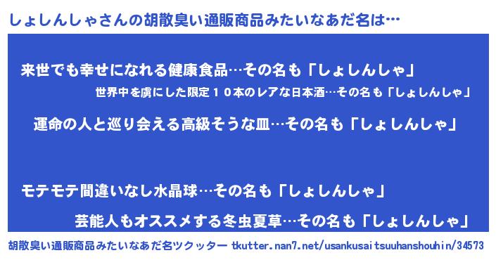しょしんしゃさんの胡散臭い通販商品みたいなあだ名をツクッター!