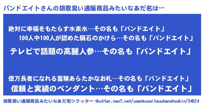 | 女子向けラノベタイトル風あだ名 | 『バンドエイトの玉の輿計画!』 |