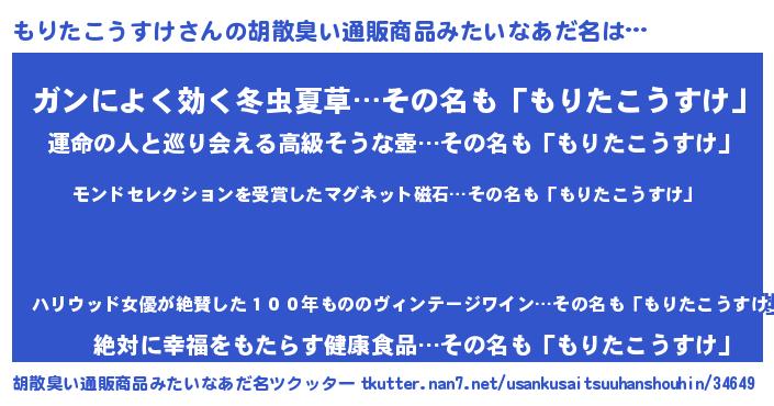 | ヘコむあだ名 | 『もりたこうすけ(笑)』『つくし』 |