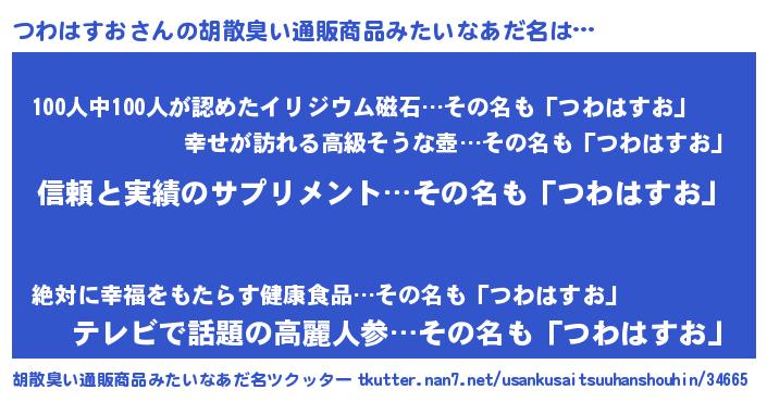 | 欧米人風あだ名 | 『トリンドルつわはすお』 |