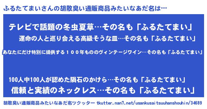 | 意味不明あだ名 | 『住所不定無職ふるたてまい(7歳)』 |
