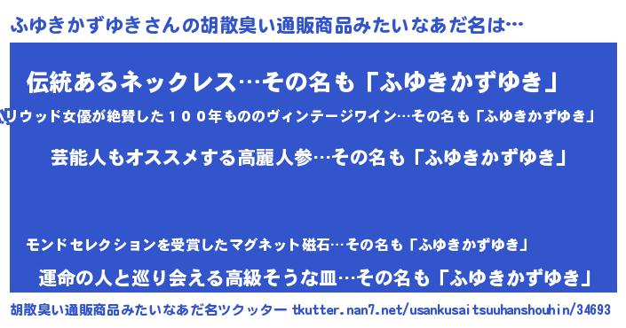 | 男性向けラノベタイトル風あだ名 | 『Re:ふゆきかずゆきから始める異世界生活』 |