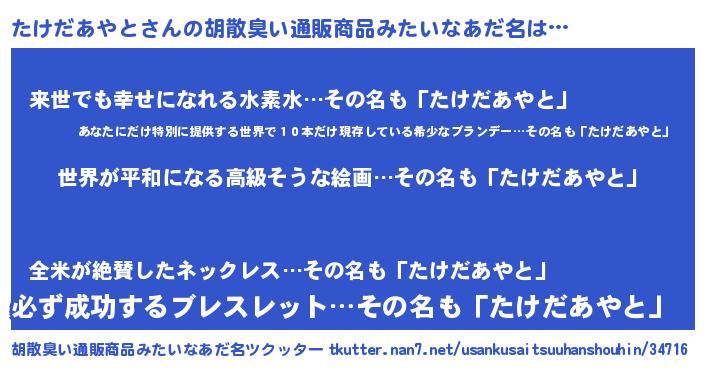 | 意味不明あだ名 | 『たけだあやとフォーエバー』 |