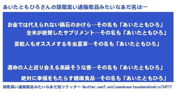 | 男性向けラノベタイトル風あだ名 | 『Re:あいたともひろから始める異世界生活』 |