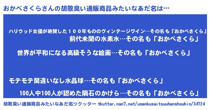 | 男性向けラノベタイトル風あだ名 | 『転生したらおかべさくらだった件』 |