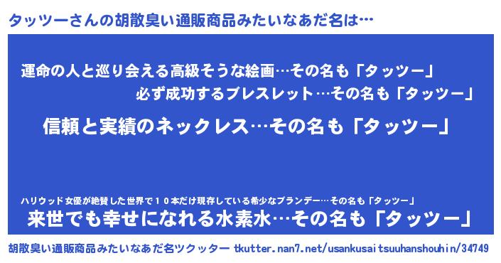 | 意味不明あだ名 | 『とにかく怪しいタッツー』 |