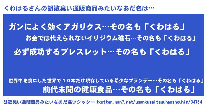 | 意味不明あだ名 | 『ペロリンくわはる』『自称くわはる』 |