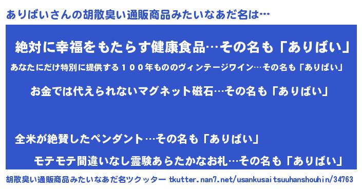 | ヘコむあだ名 | 『ありばい(笑)』『ありもー』『牛乳』 |