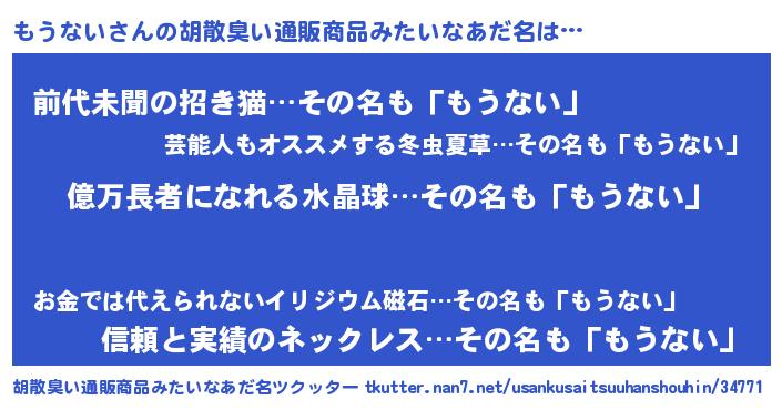 | ヘコむあだ名 | 『もうにゅー』『もうない(小並感)』 |