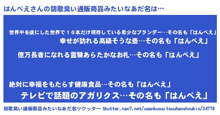 | ツイッター | はんべえさんのツイッターID『namakemono_nyan』 |